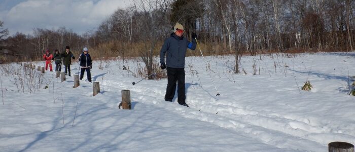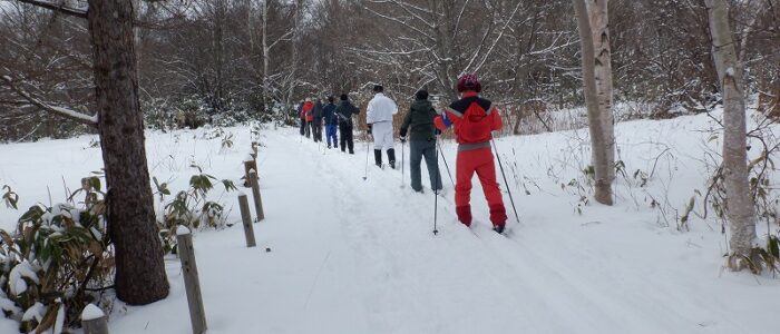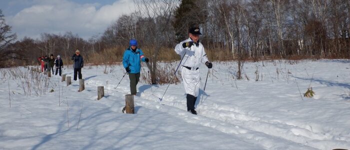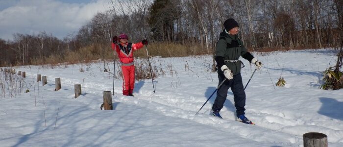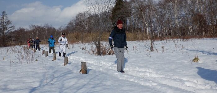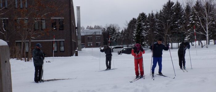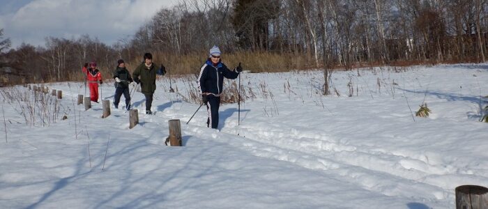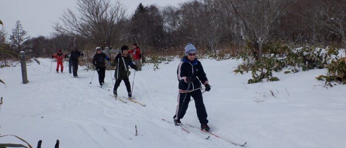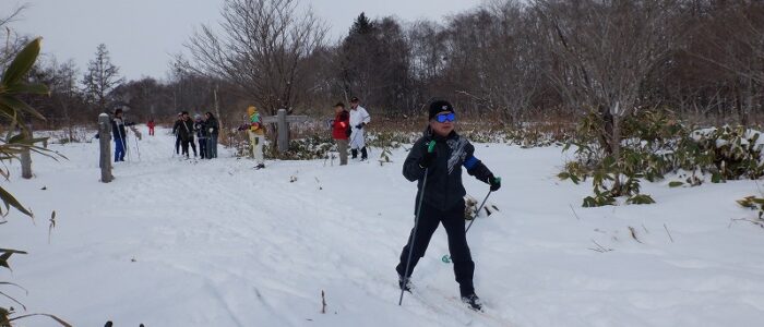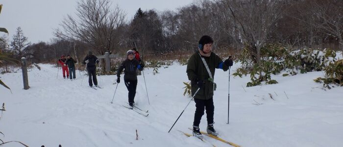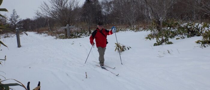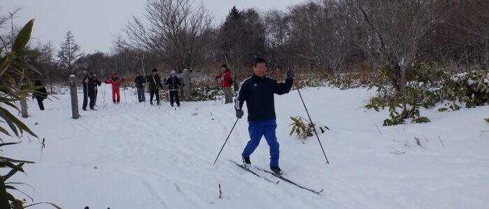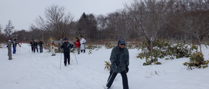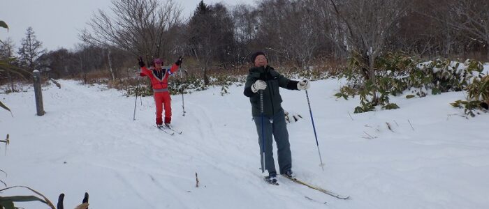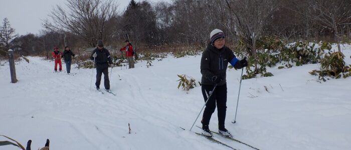 初回から、歩くスキーができるか心配ですね。