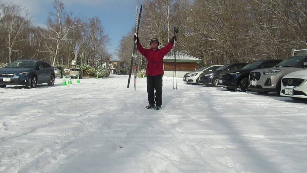 埋蔵文化財センターから少し奥の入口まで進んでスキーをつけて
