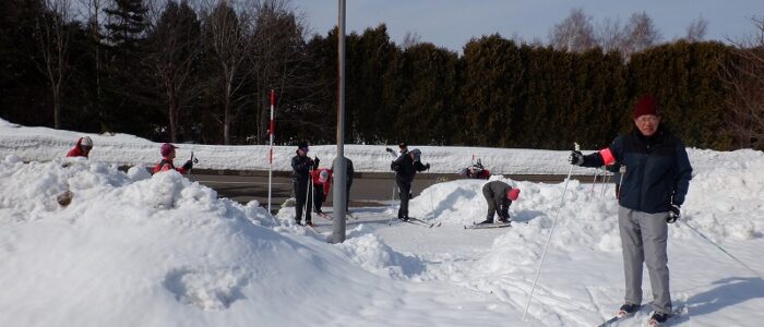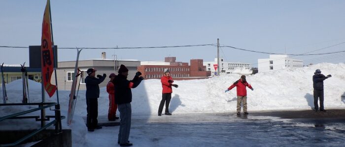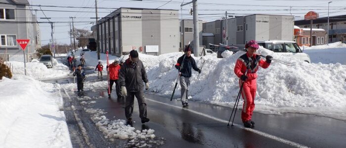 地区センターから走行開始のスタート地点まで、雪が溶けて滑りやすかったです。