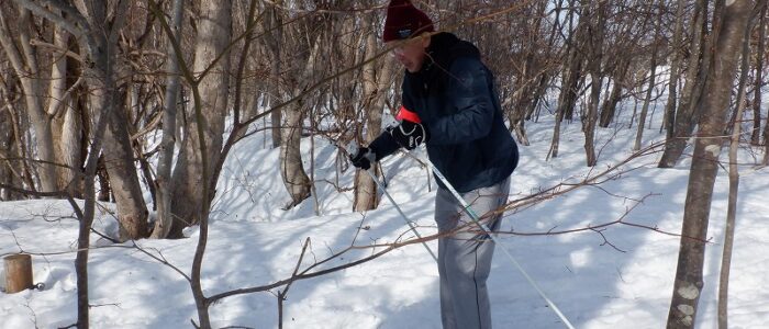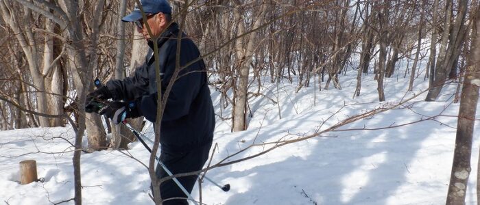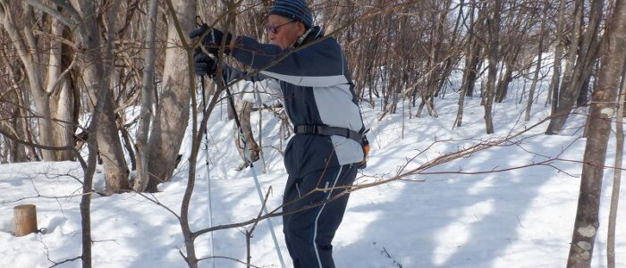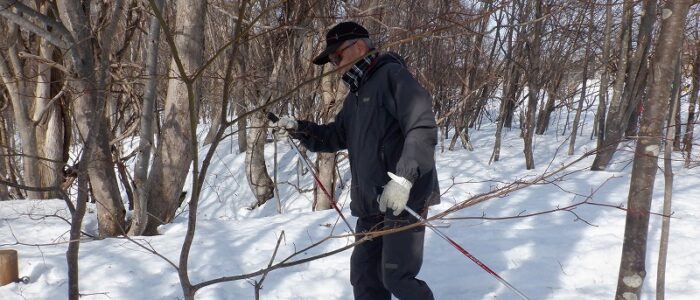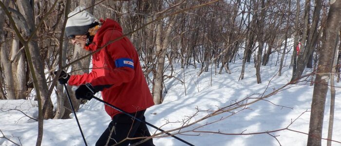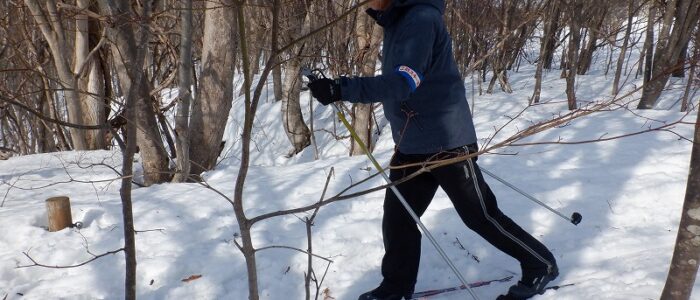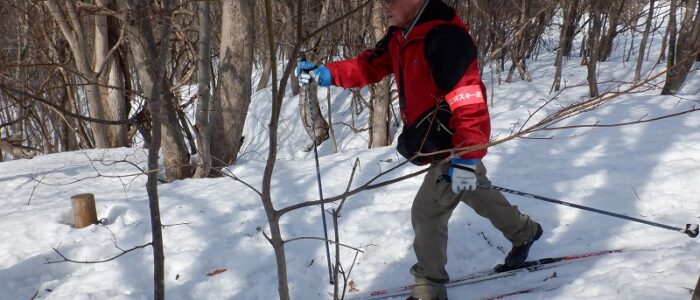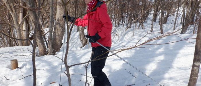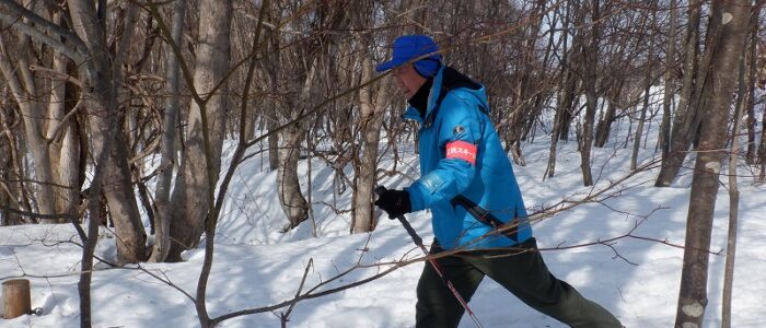 先頭は歩くスキーではなく、スノーシューで歩いて道を切り開いている感じです。